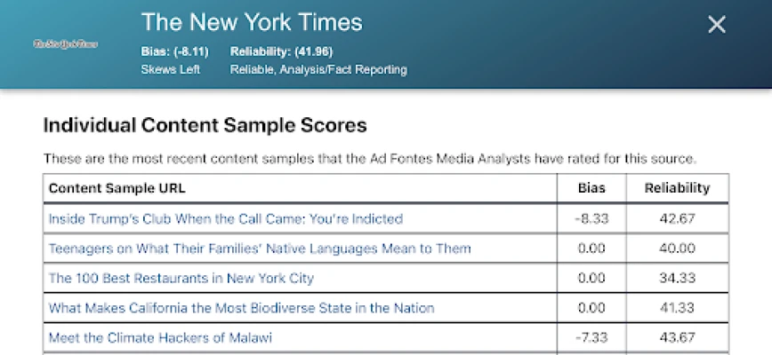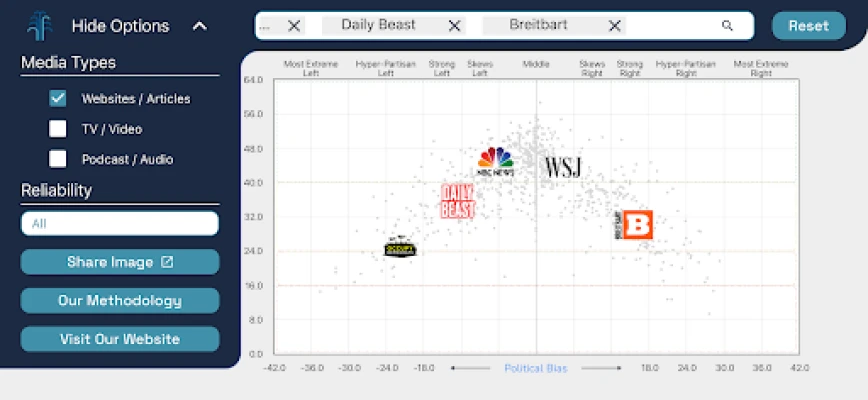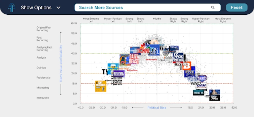 The Media Bias Chart app by Ad Fontes Media helps users gain a deeper understanding of the bias and reliability of news and news-like sources. An intuitive interface presents an extensive collection of news outlets along with their political bias and reliability assessments based on our robust methodology. This app equips users with the knowledge needed to critically evaluate news sources.