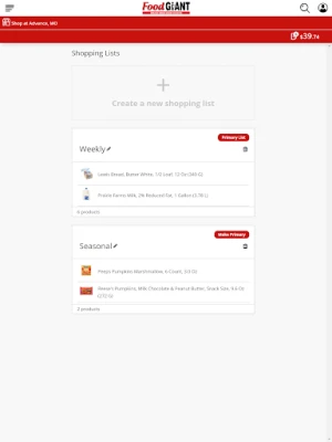 Food Giant is a group of stores with over 100 locations. Our app streamlines grocery shopping, store location, hours of business, weekly specials, recipes for meals, and a customizable grocery list all available at your finger-tips!
