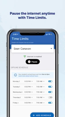-Pause internet access on-demand or at a scheduled time on school-issued devices during out-of-school hours