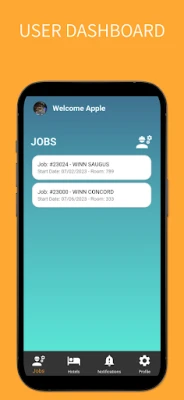 The New England Mechanical Overlay App is a job and employee scheduling software built specifically for New England Mechanical Overlay’s unique demands in the industrial welding business. The mobile app works in tandem with the more robust browser-based software. The mobile app allows employees/workers to accept or decline jobs that are assigned to them. If a job is accepted, the user can view the Job Details, Hotel Accommodations, and receive Notifications. The app has four main menu links (Jobs, Hotels, Notifications, Profile). They also have limited ability to modify their app profile.