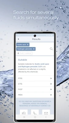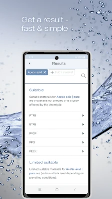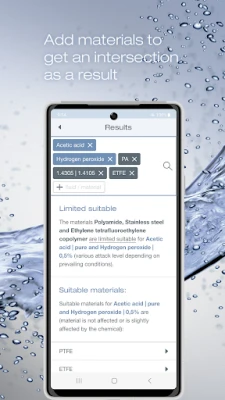 The Bürkert resistApp helps you as an interactive chemical resistance chart to find compatible materials for a multitude of media. It simplifies the selection of suitable materials when using Bürkert products.