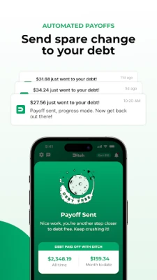 Debt sucks, but paying it off doesn't have to. With Ditch, every purchase you make brings you closer to debt-free—no stress, no spreadsheets, no overthinking. Just effortless Payoffs that chip away at your debt while you live your life.