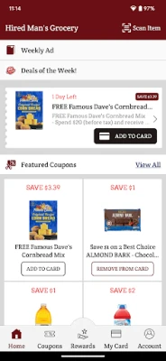 Claim as many coupons as you want with one simple scan! No more searching through mailers or printing out emails, Hired Mans Grocery is bringing rewards right to your mobile device!