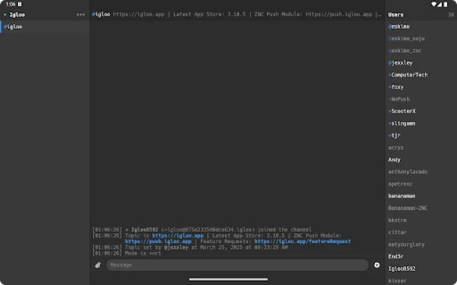 Introducing Igloo for Android: a full featured IRC Client with enhanced performance and stability. This latest version, reengineered from the ground up, offers a refined user experience while maintaining the simplicity and versatility you expect from Igloo.