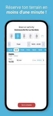 Fini la corvée de réservation ! Avec l'application tu n'as plus qu'à accéder aux créneaux disponibles et à en choisir un. Le club recevra alors automatiquement ta réservation.