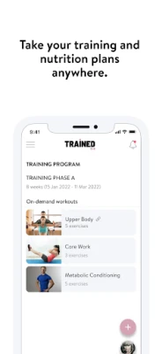 With the TRAINED App, you will have access to workout programs designed specifically to help you reach your fitness and health goals! You can follow & track your workouts, your nutrition, your lifestyle habits, measurements and results–all with the help of your coach.