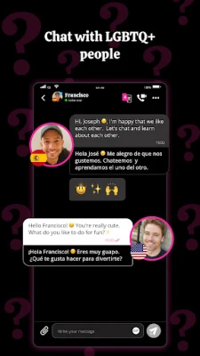 • Chat with LGBTQ+ singles using instant translation.